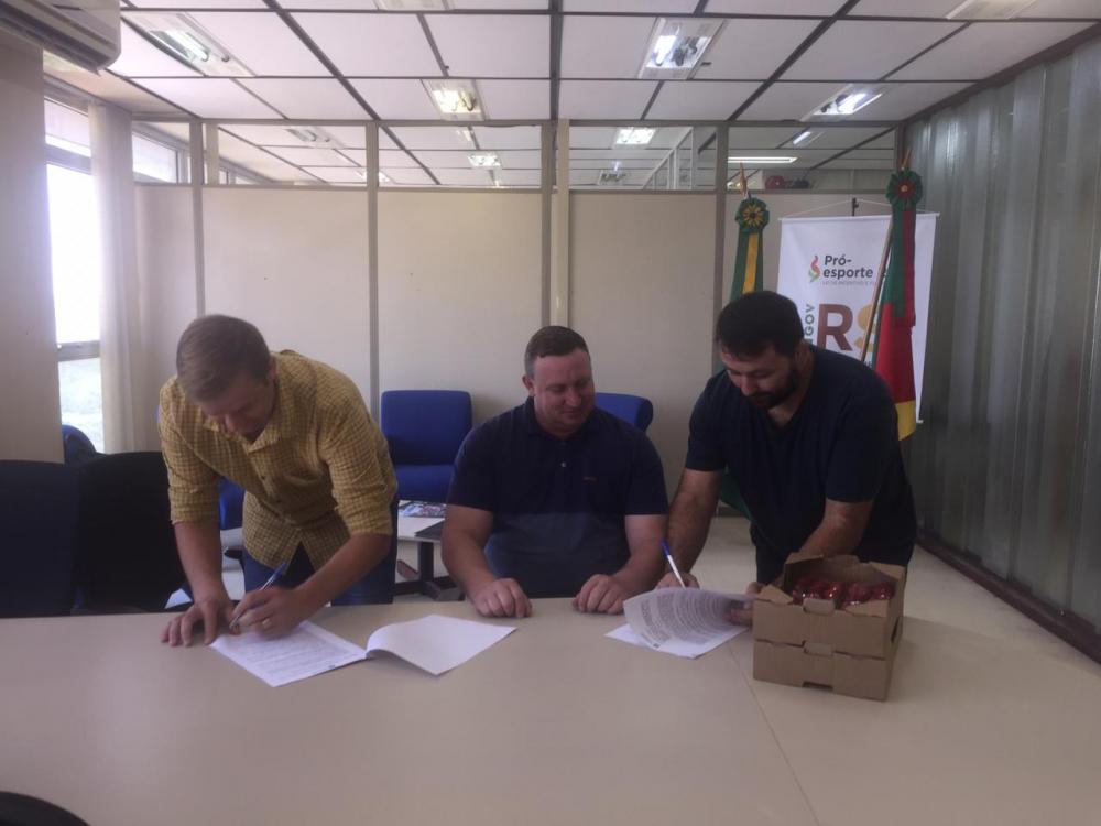 Na manhã desta quarta, o prefeito Fábio Persch e o diretor de esportes Dirceu "Pila" Fritzen estiveram em Porto Alegre onde participaram de reunião com o secretário estadual de esportes e lazer, o renomado atleta João Derli.