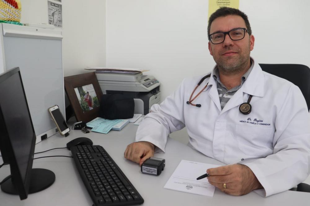 Doutor Rogério é Médico de Família e Comunidade, trabalha na Equipe da Saúde da Família do Morro Tico-Tico, é internista no Hospital São Pedro Canísio e Diretor Técnico do Hospital Schlatter de Feliz.