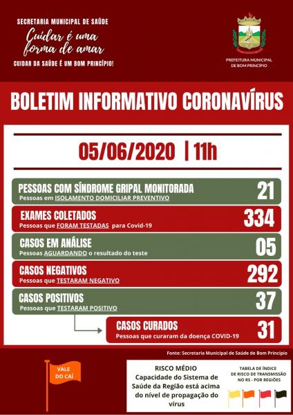 Nesta sexta, dia 05 de junho, foram confirmados mais 10 casos do Covid-19 no município de Bom Princípio.