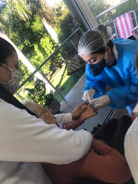 Tendo em vista prevenir e ampliar o cuidado no que diz respeito ao grupo de risco, a Secretaria Municipal de Saúde de Bom Princípio, foi até a Residência Geriátrica Nosso Lar, realizando testes rápidos do Covid-19 nos idosos lá residentes.