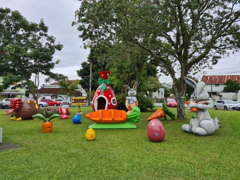Em um ano totalmente atípico as celebrações de Páscoa serão muito mais restritas às casas de famílias, ainda assim, uma simples decoração foi instalada na Praça dos Ipês, tendo em vista lembrar a data.