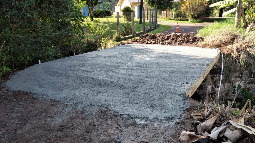 Os moradores de Piedade, nas proximidades da divisa com São Vendelino, deverão ficar atentos no que diz respeito ao trânsito, afinal, está em processo de secagem o concreto feito sobre o pontilhão lá existente. Uma nova malha de aço foi instalada e depois feita a concretagem, assim como foram deixadas esperadas para a instalação de um corrimão (que antes não havia).