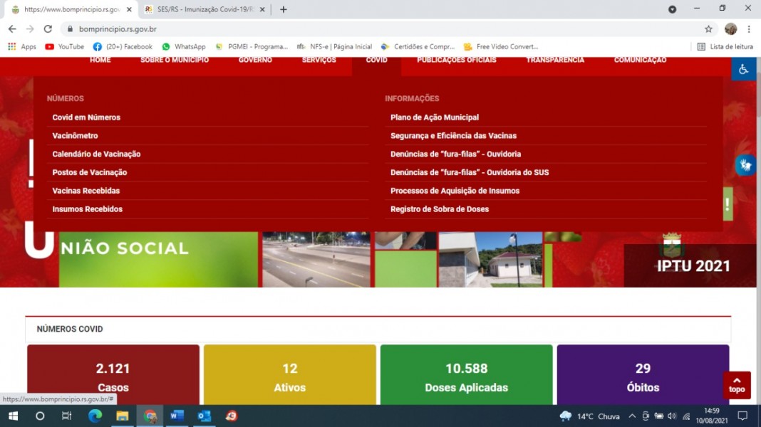 Desde 19 de julho, o site de Bom Princípio - e também de todos os municípios do Rio Grande do Sul – precisam ter uma aba específica sobre a Covid em sua página oficial. A medida é do Tribunal de Contas do Estado, que pretende com isso dar mais transparência à vacinação e a todos os atos e informações que envolvam a Covid.