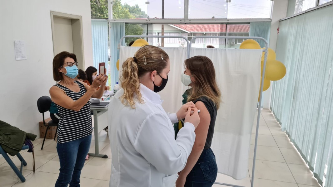 A terça-feira desta semana foi muito especial para as bom-principienses Liduina Seimetz e sua filha Giovanna. Mãe e filha foram ao Ponto de Vacinação no dia em que a jovem completou 27 anos de idade, ambas para receberem sua primeira dose contra a Covid. “Não pude receber a vacina antes por motivo de doença. Mas estamos muito felizes agora”, disse a mãe, enquanto fotografava a filha recebendo seu “presente de aniversário”.