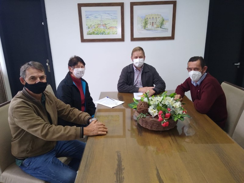 Na manhã desta segunda-feira, no gabinete do Executivo, o prefeito Fábio Persch e o vice-prefeito Joãozinho Weschenfelder receberam o presidente da Câmara de Vereadores, João Augusto Rodrigues da Silva, acompanhado de Maria Dolores Wolf, presidente do Clube de Mães Cristo Rei.