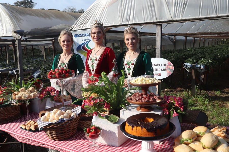 O ambiente antes já convidativo, ficou ainda mais belo como uma mesa posta, a céu aberto, estando ali as soberanas Júlia Nicoli, Carolina e Cris Helen, com a graça e encanto que lhes são peculiares. A imprensa vinda da Capital e grandes cidades gaúchas interagiu, conversou com as autoridades e também com os produtores rurais, ficando maravilhados com tudo. Alguns, em especial, tinham um ar de surpresa, pois foram apresentados à uma lavoura pela primeira vez. Os morangos, para eles, eram ainda mais gostosos. Tinham uma única certeza, são de Bom Princípio os morangos mais saborosos do Brasil.
