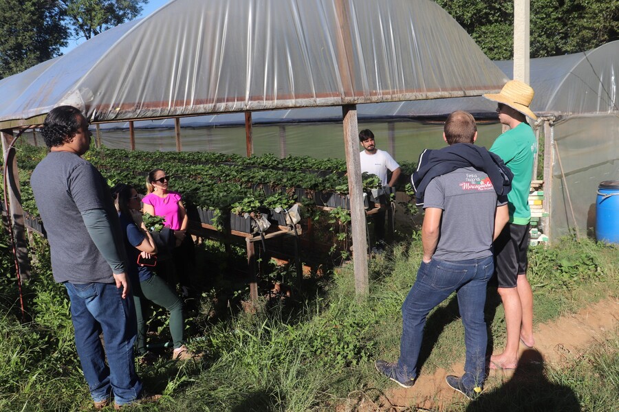 A primeira visita feita foi na propriedade da família Scherer, no Passo Salseiro, sendo a recepção feita pelo jovem Ruan Carlos Scherer, de 24 anos. A explanação do jovem empreendedor rural foi clara, mostrando a importância do trabalho de sucessão no campo, assim como as possibilidades da agricultura orgânica, apresentando a realidade em uma propriedade pequena no interior gaúcho.