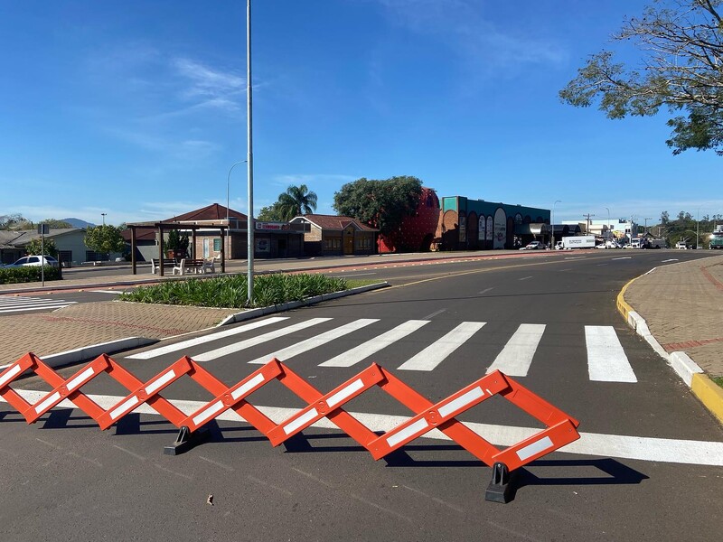 Por conta da montagem das estruturas da 20ª Festa Nacional do Moranguinho o trânsito da Avenida Emancipação está interrompido entre o Hotel Steffen e a Rotatória no largo da prefeitura.