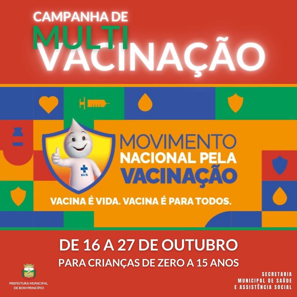Entre os dias 16 e 27 de outubro, o país inteiro estará vacinando crianças de zero a 15 anos de idade. A campanha é apenas para atualizar a caderneta de vacinação, deixando em dia todas as vacinas da faixa etária da criança, como HPV, meningocócicas, sarampo, poliomielite, rubéola, febre amarela, antitetânica e outras.