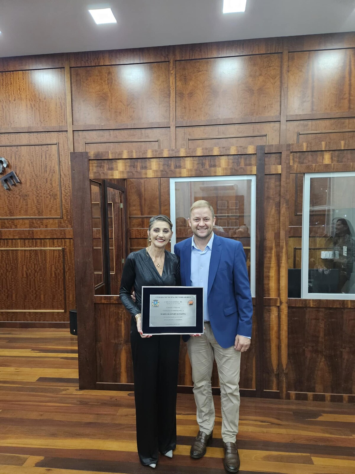 Ainda que tenha deixado Bom Princípio há vários anos, passando a morar na Serra Gaúcha, Marisa Kaspary Zanatta jamais perdeu o vínculo com a sua terra natal, afinal, onde foi a primeira Rainha da Festa Nacional do Moranguinho. E na noite de hoje, 16 de abril, Marisa recebeu a honraria como Cidadã Barbosense.