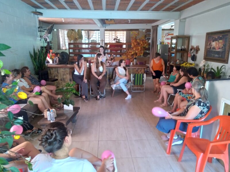As estagiárias de Medicina Julia Furlanetto Knaach, Iana Dalpiaz e Gabriela Macalossi conversaram com o grupo sobre prevenção, mamografia, exames, alimentação saudável e tratamentos. Também abriram espaço para perguntas e realizaram atividades interativas.