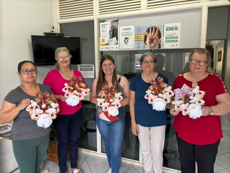 Na foto, um grupo do CRAS que confeccionou uma linda guirlanda natalina.