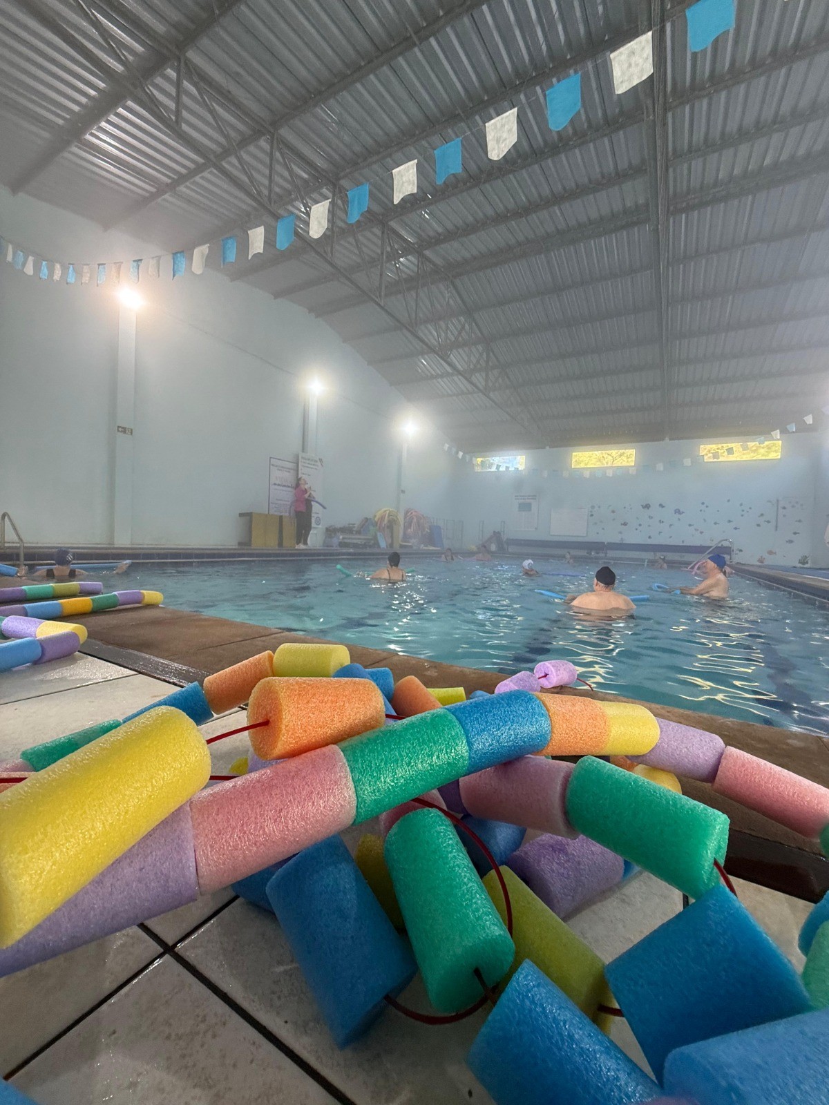 As aulas de hidroginástica acontecem no Clube União, com uma turma nas terças-feiras às 9h e outra nas quintas-feiras às 8h, totalizando 50 vagas (25 por turma).