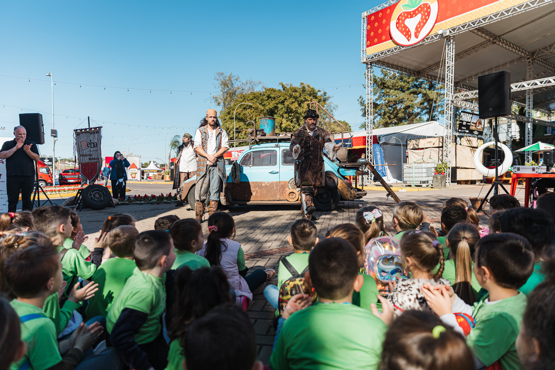 Além do parque de diversões — que foi o grande sucesso do dia — os pequenos visitantes se encantaram com atrações preparadas especialmente para eles. Personagens infantis circularam por todo o parque, interagindo com as crianças e tornando a experiência ainda mais mágica e inesquecível. Além disso, o público teve a oportunidade de conferir a apresentação da peça As Aventuras do Fusca à Vela, encenada pelo Grupo Ueba.
