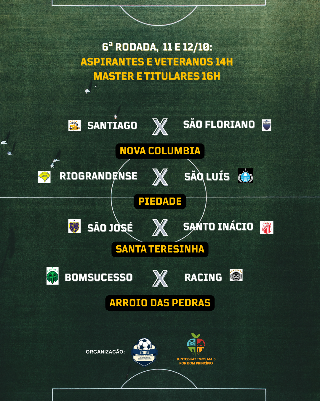 6ª rodada do Municipal de Futebol Varzeano, 11 e 12 de outubro