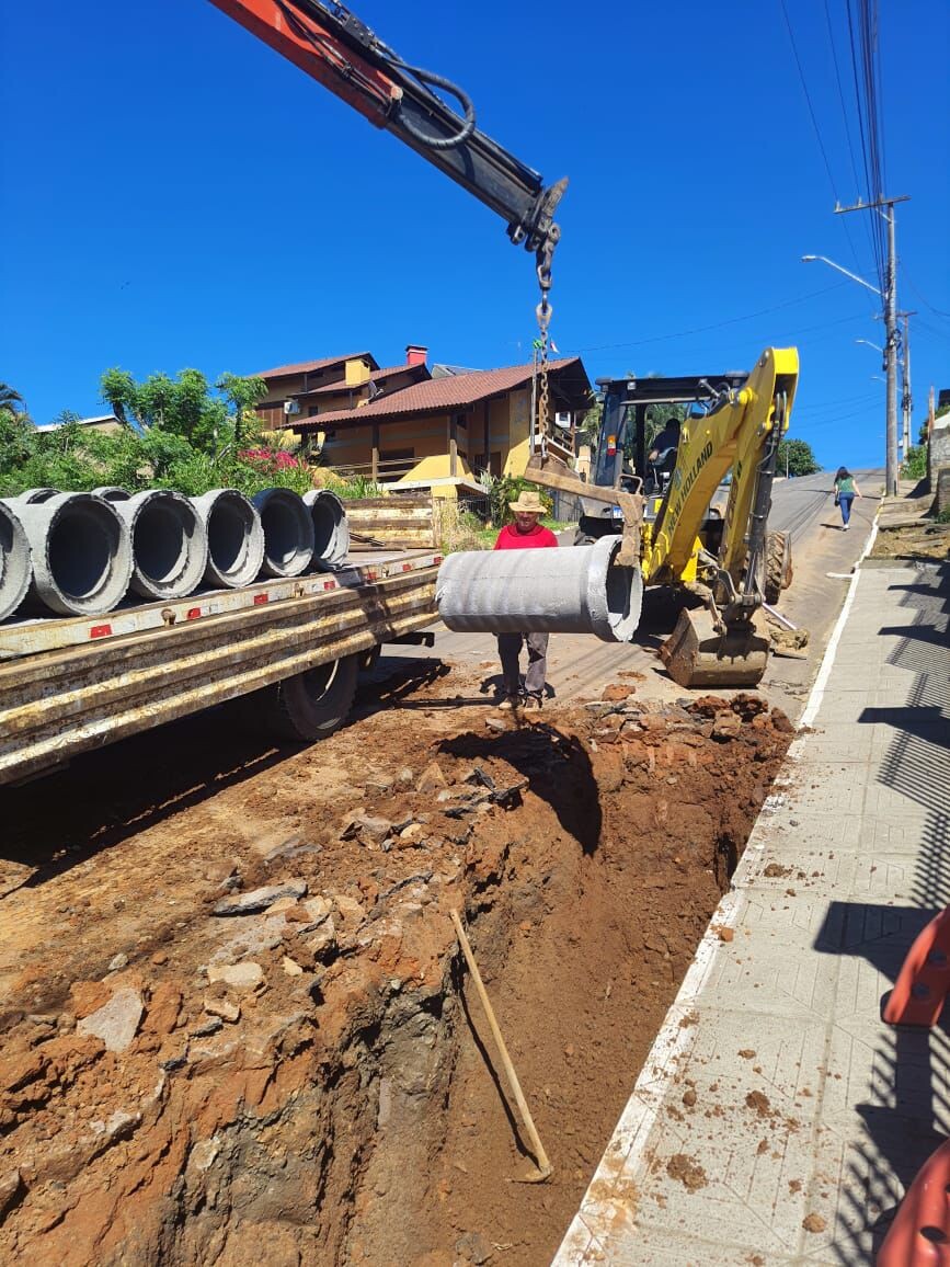Na semana que passou, a Secretaria de Obras e Infraestrutura realizou a troca completa da tubulação na Rua Augusto Steffen, na Vila Schmitz. Os canos estavam entupidos por resíduos, o que causava o transbordamento da água.