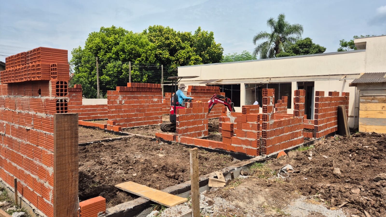 Os trabalhos estão em andamento e contemplam a ampliação do prédio, com a construção de quatro novas salas de aula, além de dois novos banheiros, sendo um masculino e um feminino, e a execução da drenagem do terreno. As melhorias vão garantir mais conforto, funcionalidade e melhores condições de uso para crianças, educadores e equipes de apoio.