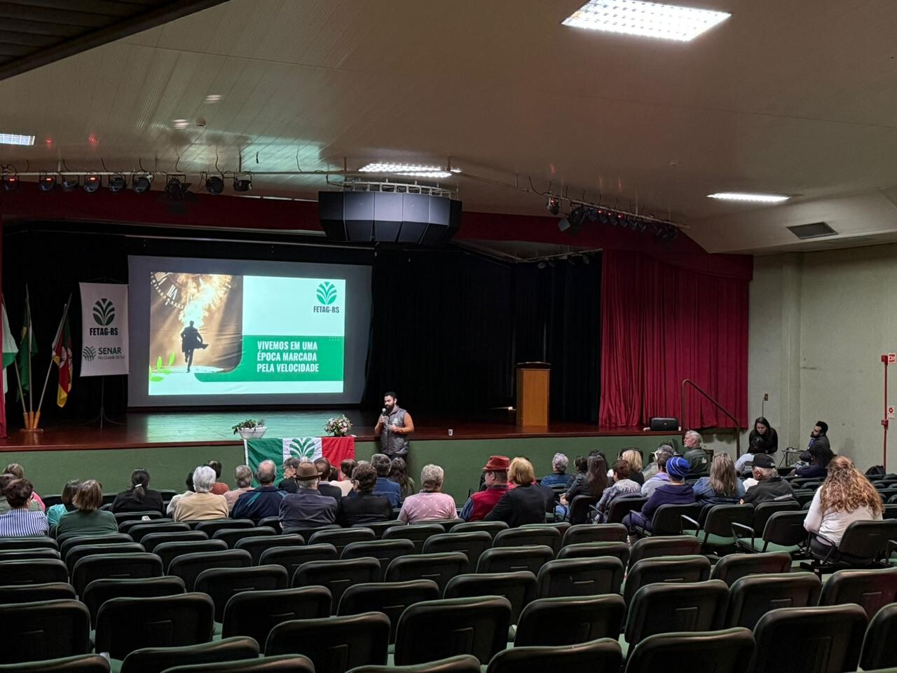 À tarde, a programação seguiu com palestra de Jaciara Müller, secretária da FETAG-RS e responsável pela Comissão Estadual de Aposentados e da Saúde. Ela abordou temas relacionados às políticas públicas de saúde, direitos dos trabalhadores rurais e à importância da participação nas instâncias de representação estadual.