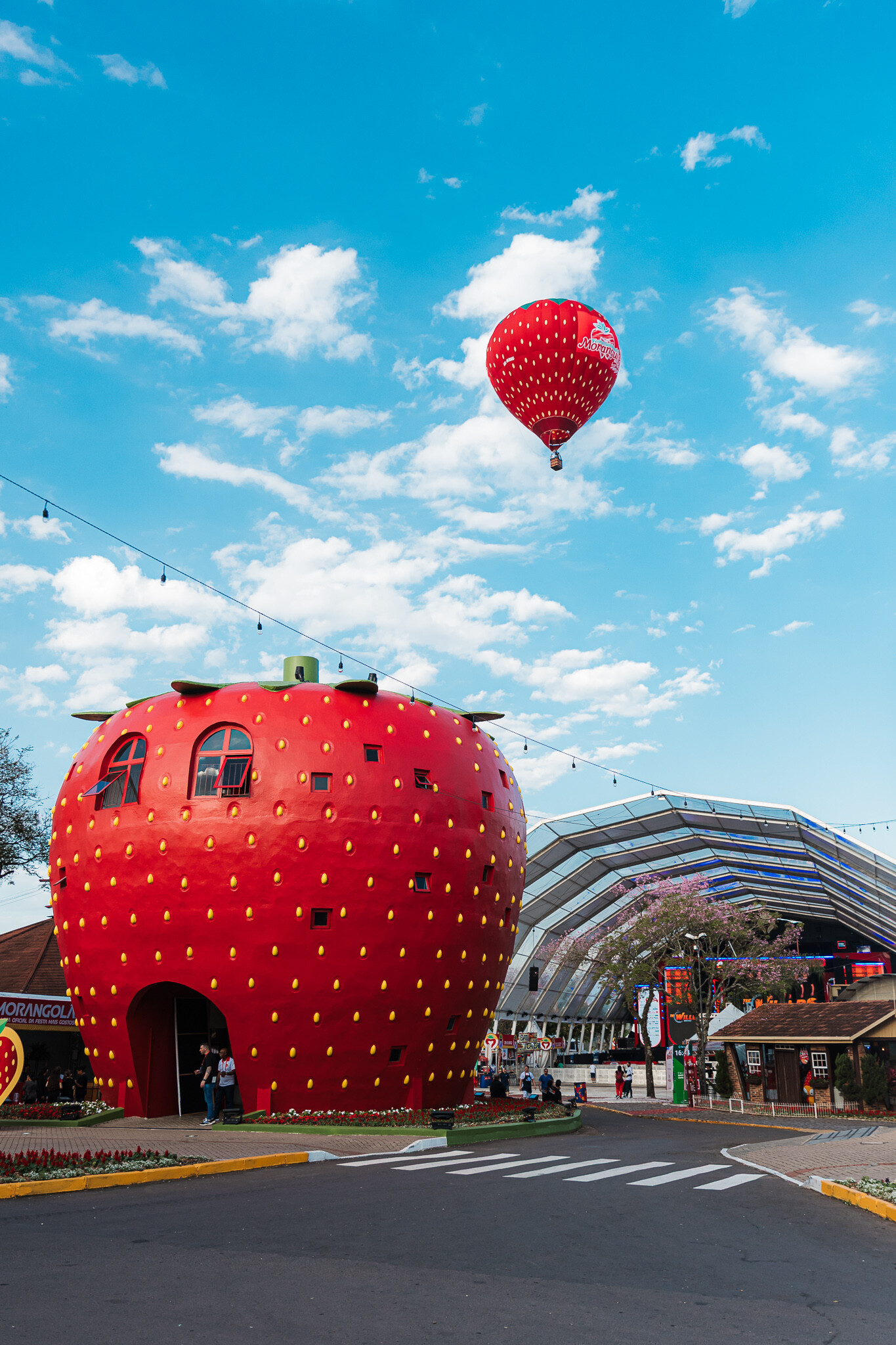 Situada na entrada da cidade, é uma das referências visuais da Capital Nacional do Moranguinho.