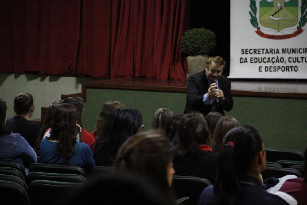 Emoção e lágrimas marcaram o primeiro dia da Semana de Valorização da Vida, com as palestras do professor, parapsicólogo e palestrante Selmiro Paulo Wolfarth. Ele falou pela manhã e à tarde para professores e funcionários das escolas e, a partir das 19h30, a conversa foi com os alunos do turno da noite. A programação de palestras vai até sexta-feira (dia 20), no Centro Municipal de Cultura e Eventos, devendo abranger também mais estudantes, famílias e servidores públicos. Isso além de uma manhã especial de apoio para pessoas que tenham familiares com problemas de drogas, álcool ou depressão.