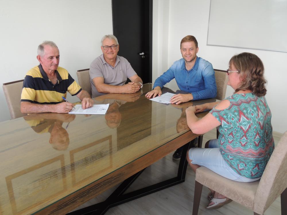 A reunião para as assinaturas aconteceu no gabinete com a presença do presidente da Associação Cultural e Esportiva, Nilvo Steffens e do Coordenador de Assuntos Estratégicos da Prefeitura, João Carlos Ledur.