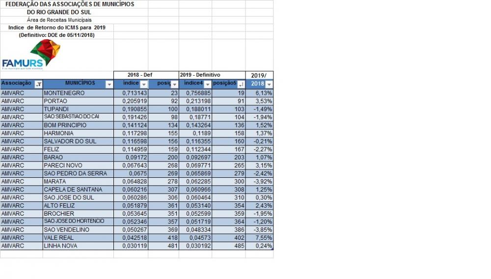 Foi divulgado nesta semana o índice definitivo ICMS para o ano de 2019. O índice apresentado é reflexo direto do primeiro ano das novas gestões administrativas que iniciaram em 2017, pois o retorno do ICMS se dá, na prática, apenas dois anos depois do investimento feito. Assim, o aumento do valor adicionado, através de incentivo às empresas e empreendimentos rurais são fator essencial para a mudança no quadro.