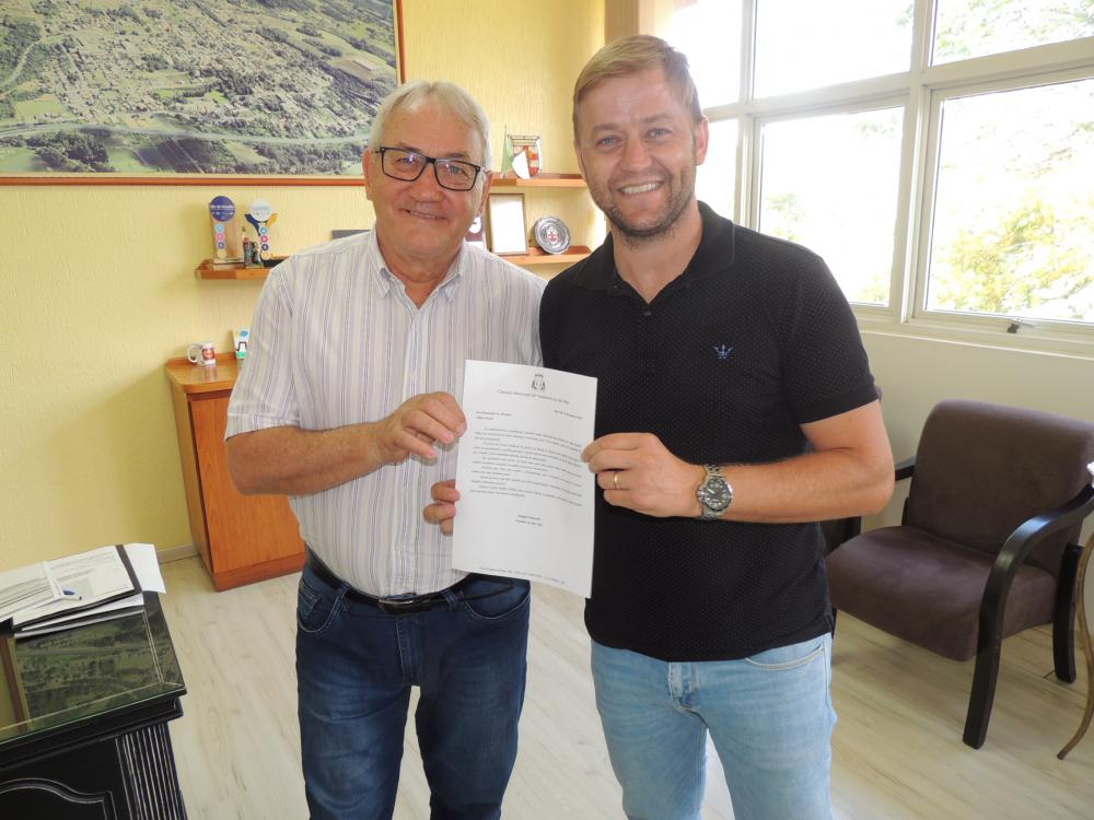 Fábio Persch recebeu o ofício em companhia do servidor das finanças Jacob Adelmo Baumgratz, que é envolvido com a gestão pública desde os primeiros tempos da emancipação. "É interessante ter o reconhecimento da nossa população e também daqueles que nos visitaram, mostrando que estas obras têm relevância aos olhos da comunidade", citou Fábio. De acordo com o prefeito, o que foi confirmado por Baumgratz, também na inauguração, em 1992, o Ginásio de Esportes foi motivo de grande satisfação para a comunidade local.
