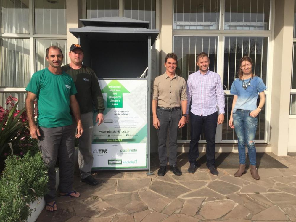 Foram entregues na manhã desta terça, pela Fibraform, uma das principais empresas de Bom Princípio, containers específicos para a coleta de EPS (Isopor), havendo pontos de coleta na prefeitura e em várias escolas de Bom Princípio.