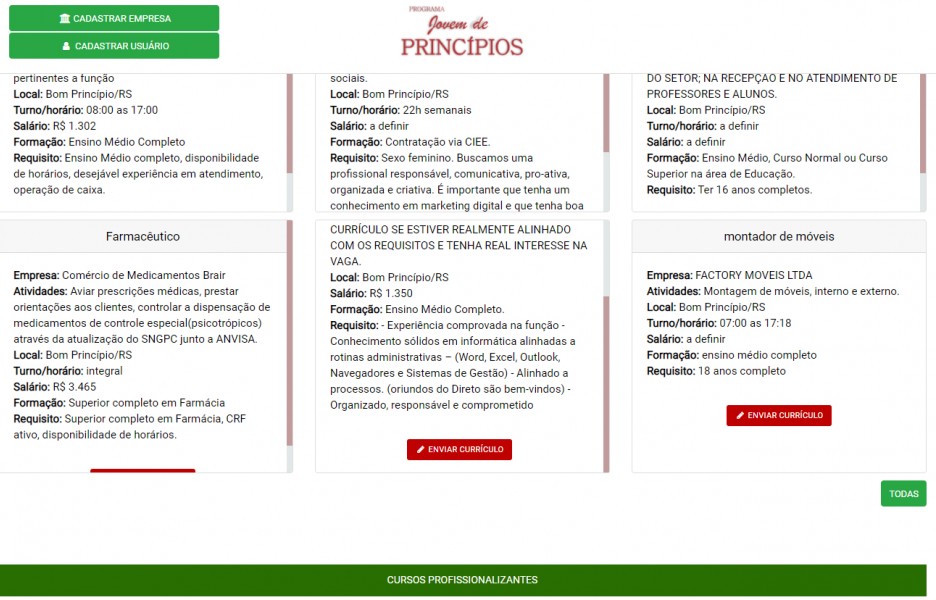 Há vagas de trabalho através do Jovem de Princípios