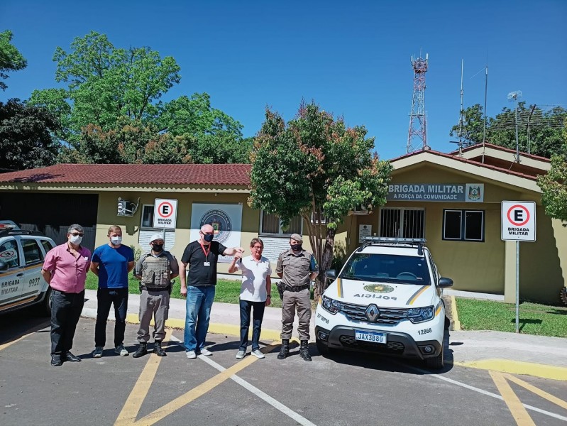 O Capitão Susin e o Tenente Gustavo Cenci receberam as chaves da Duster que reforça a frota que neste ano recebeu também um veículo por emenda parlamentar.