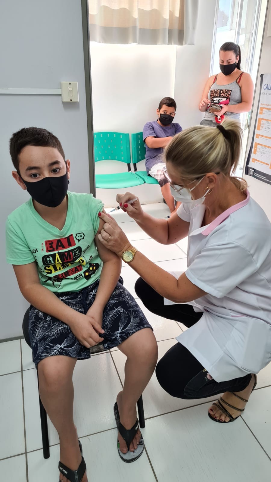 - Para vacinar, é necessário apresentar documento de identificação e carteirinha, vir acompanhado com um responsável e permanecer no local por 20 minutos depois de receber a sua dose.