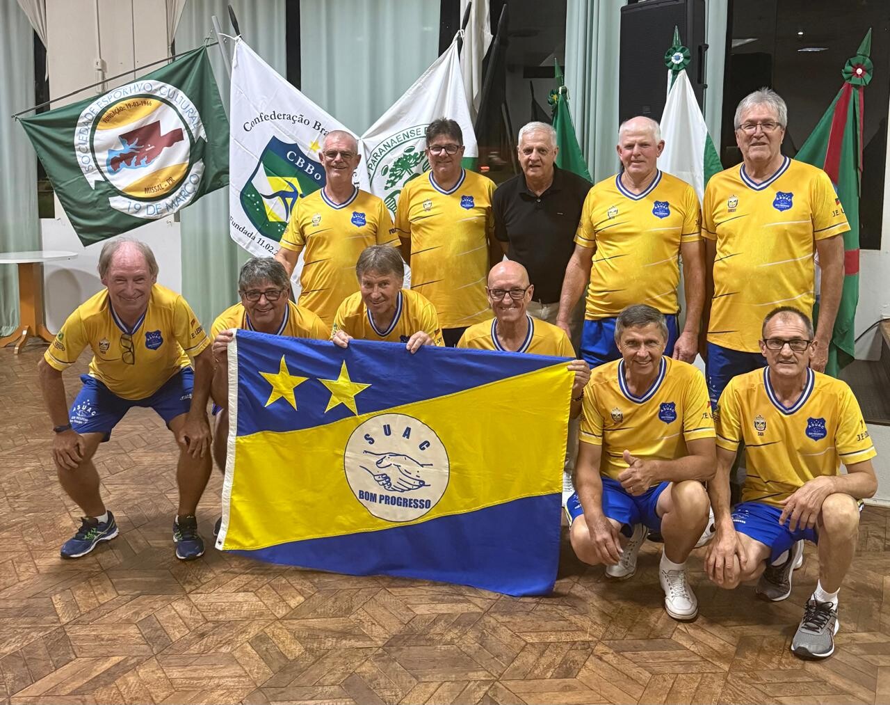 A Sociedade Bom Progresso, de Bom Princípio, representa o município no 4º Campeonato Brasileiro de Clubes da Melhor Idade Masculino – modalidade bola 23 cm. O certame será realizado entre os dias 9, quinta-feira, e 12, domingo, na Sociedade Cultural 19 de Março, em Missal (PR). A competição reúne equipes de diferentes regiões do país e está organizada em quatro chaves.